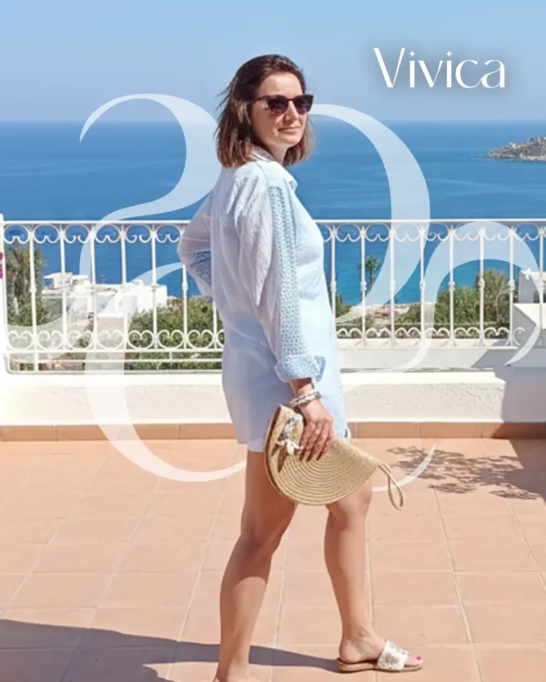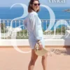Soft powder blue mesh shirt with alternating textured panels. Lightweight, sheer, and effortlessly elegant—your layering staple this summer.