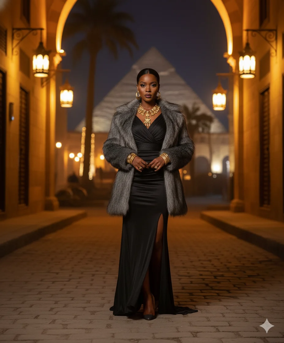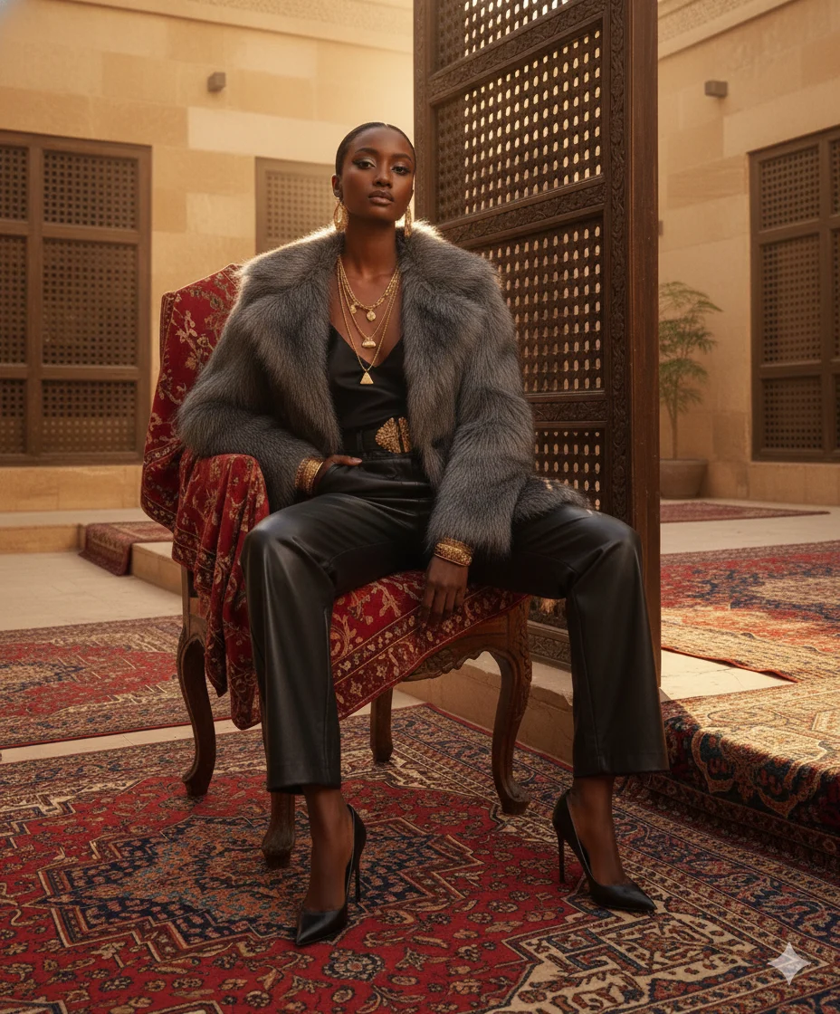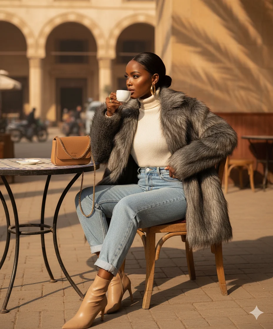 Luxuriously soft oversized faux-fur blazer that defines Egyptian chic — effortless elegance from morning coffee moments to night-out glamour.